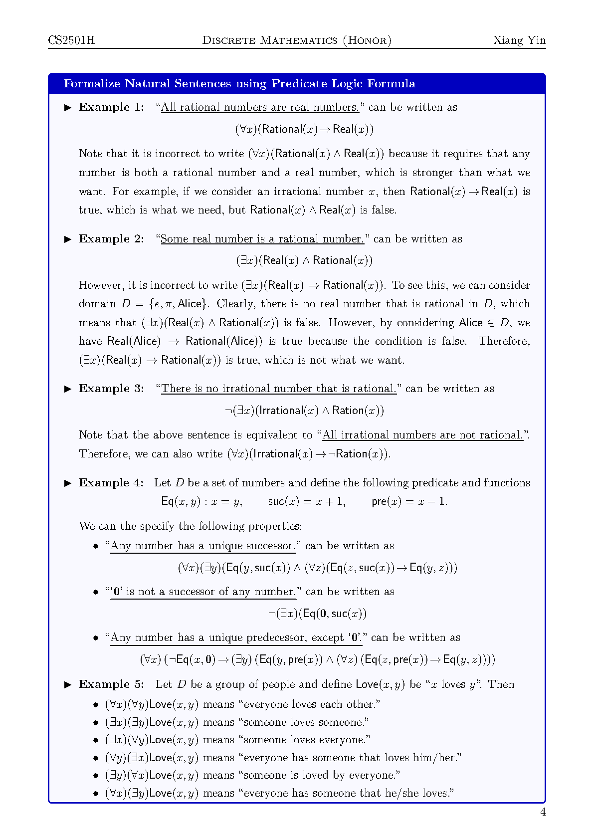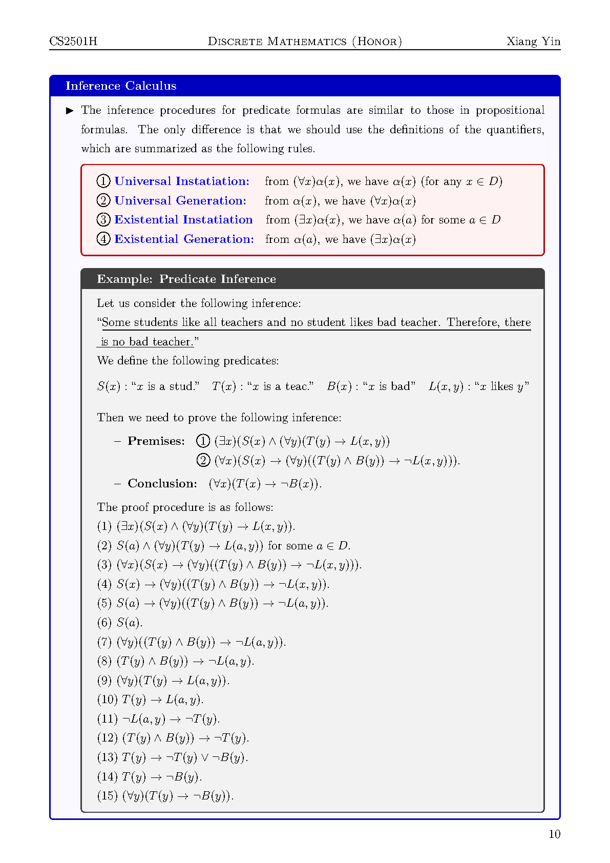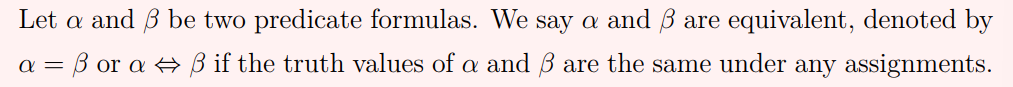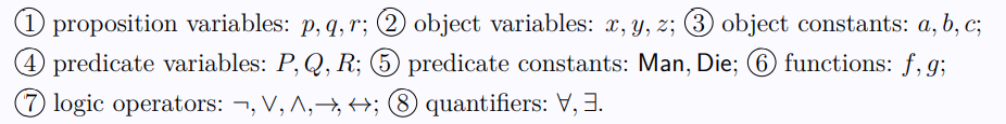 Predicate (谓词):$P : D^ n→ {0, 1}$